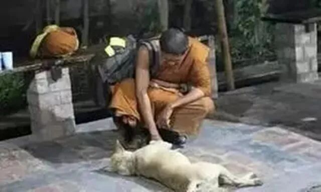 有一天,月印法师告诉他的徒弟说:“这条老狗染病了,你们把它拉出去杀了!”