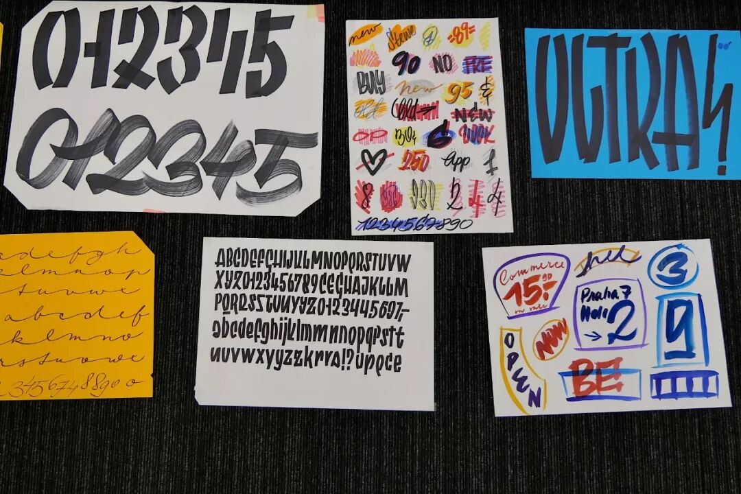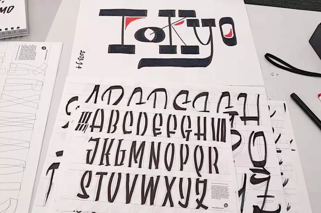— 最后的课题是基于教学,创写自己的西文字体。学员们使用 Petra 提供的各种笔和道具进行创作。