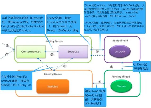 当一个线程成功获取到锁时 对象监视器的 owner 字段从 NULL 变为非空,指向此线程 必须将自己从ContentionList或EntryList中出队