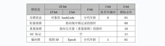 Mark Word 存储的并非对象的 实际业务数据(如对象的字段值),属于 额外存储成本。为了节约存储空间,Mark Word 被设计为一个 非固定的数据结构,以便在尽量小的空间中存储尽量多的数据,它会根据对象的状态,变换自己的数据结构,从而复用自己的存储空间。