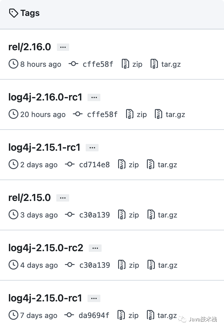 这几天为了应对《突发!Apache Log4j2 报核弹级漏洞。。赶紧修复!!》,Log4j2 连续发布了两个 RC(Release Candidate)候选版本,1 个正式版本。