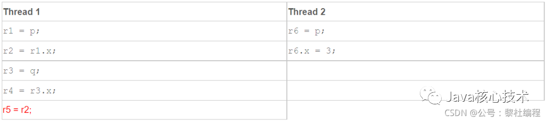 另一个问题是,该规范允许 JVM 实现对 final 属性进行强制优化。在一个线程内,允许对于 final 属性的读操作与构造方法之外的对于这个 final 属性的修改进行重排序。