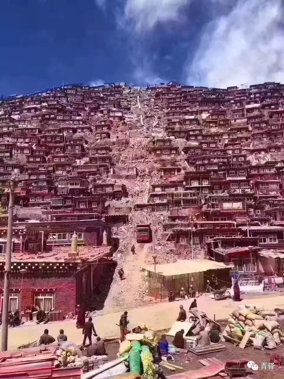 其实早在去年7月,朋友圈就疯传过“色达红房子即将拆除”的消息。而最近闹的沸沸扬扬的拆除,只因为之前一直零散的施工作业在过了大半年后,于今年4月份开始大面积施工。