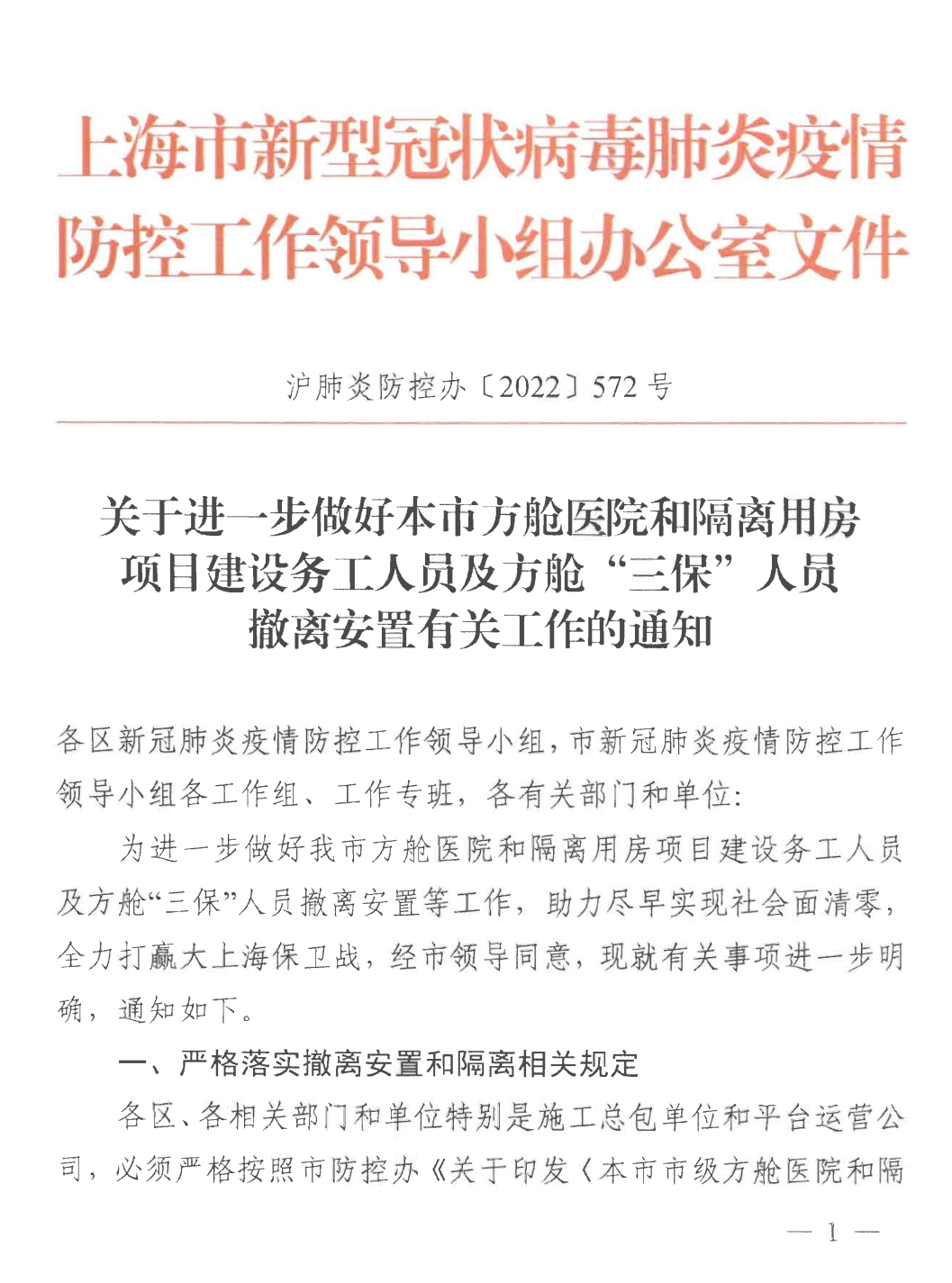 5月9日,上海市新型冠状病毒感染的肺炎疫情防控工作领导小组办公室发布了《关于进一步做好本市方舱医院和隔离用房项目建设务工人员及方舱“三保”人员撤离安置有关工作的通知》。其中: