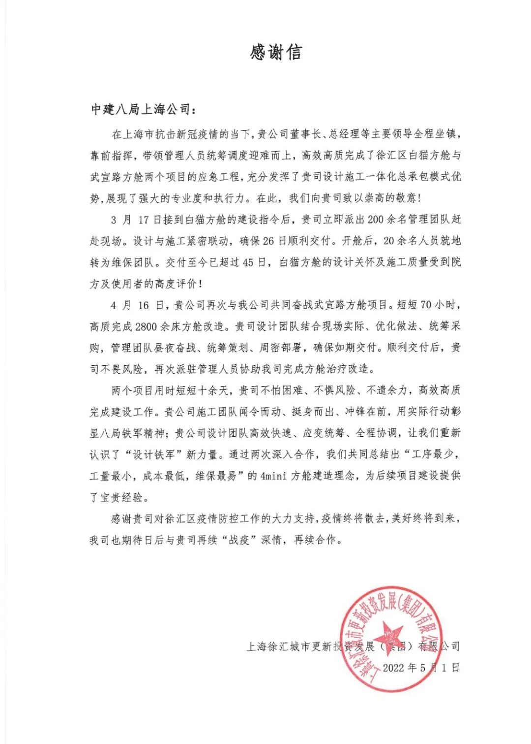 中建八局上海公司设计管理中心团队以拼搏进取、艰苦奋斗的精神,以迎难而上、攻坚克难的毅力,在党和人民最需要的时刻冲得出来、顶得上去,上下齐心、同舟共济,为打赢此次上海疫情防控攻坚战贡献了自己的力量,为上海抗疫事业上交了一份合格答卷。