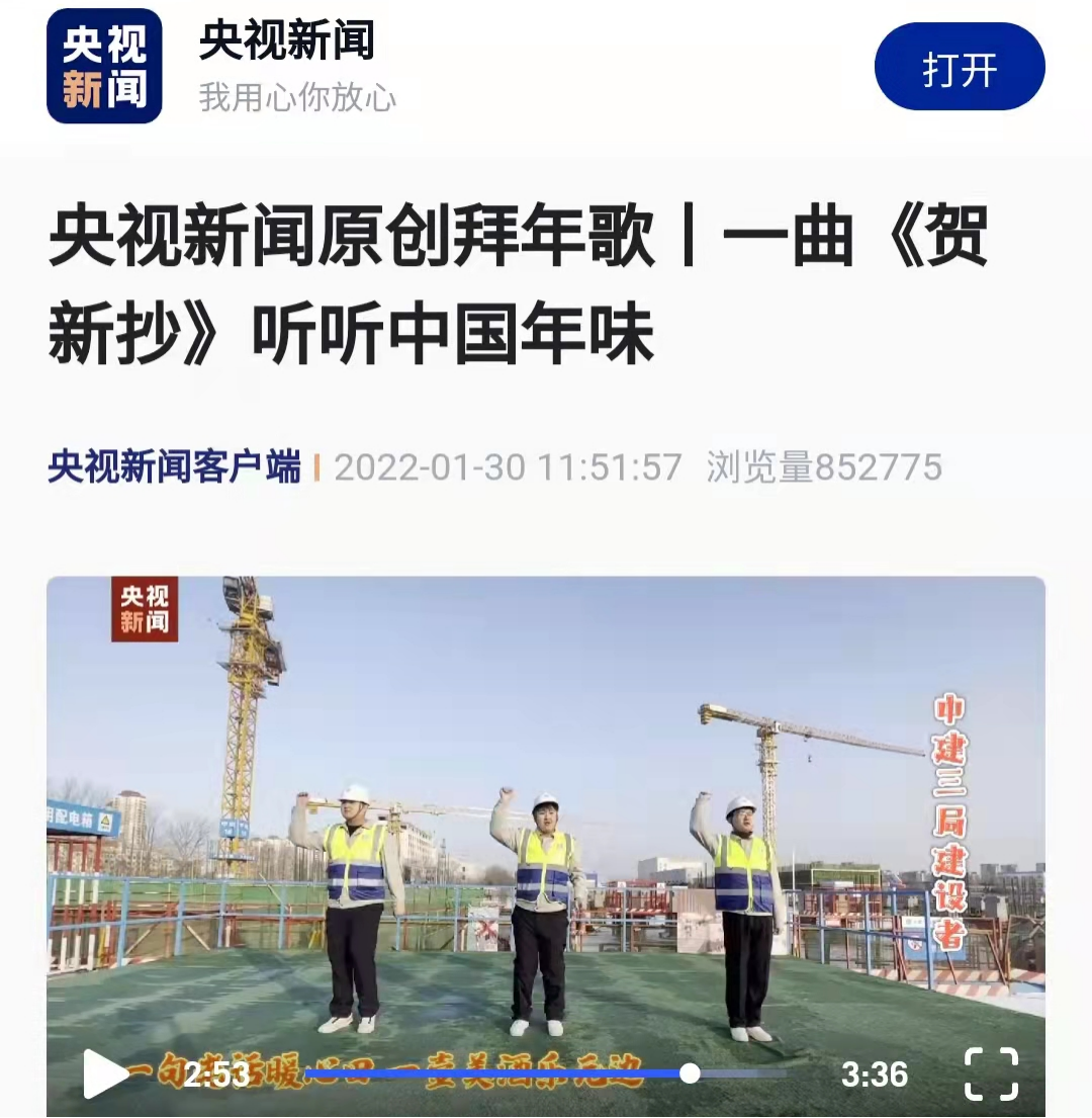 内容摘要:1月30日,央视新闻客户端播出原创拜年歌《贺新抄》,中建三局二公司建设者参与视频录制并亮相出镜。