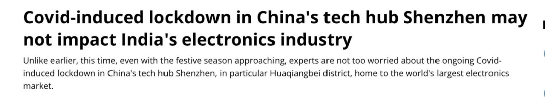 (印媒文章标题“深圳的疫情管控可能不会对印度电子产业造成影响”)