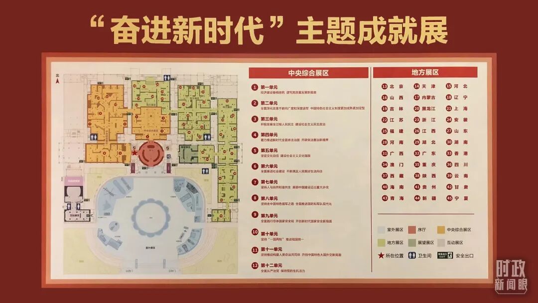 据介绍,“奋进新时代”主题成就展设序厅、中央综合展区、地方展区、展望展区、室外展区和互动展区6个展区,运用图片、实物、模型等6000多项展览要素,展现了非凡十年发展成就。
