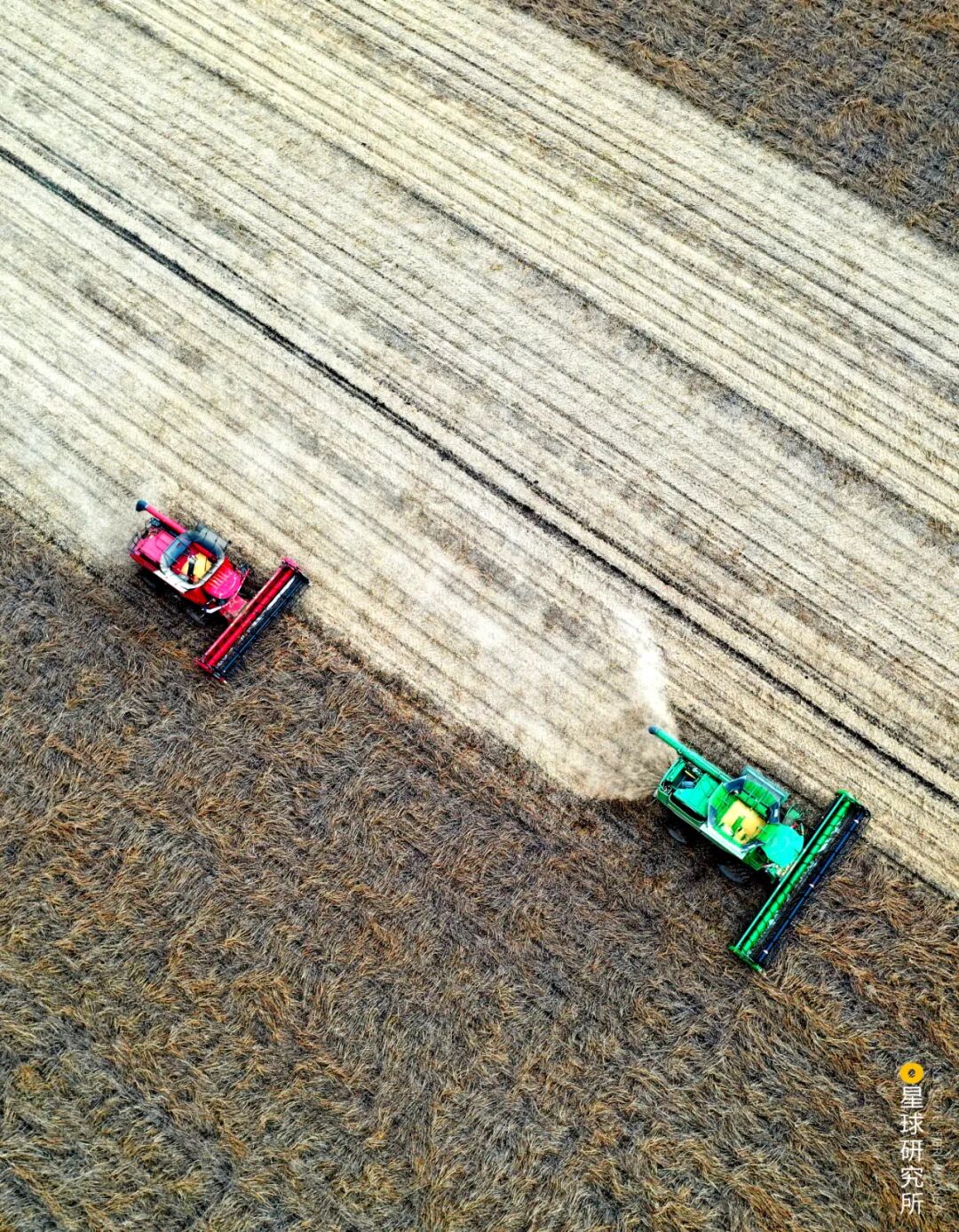 (黑龙江“北大荒”是我国著名粮仓;下图是正在收割农作物的收割机,摄影师@徐宏宇)