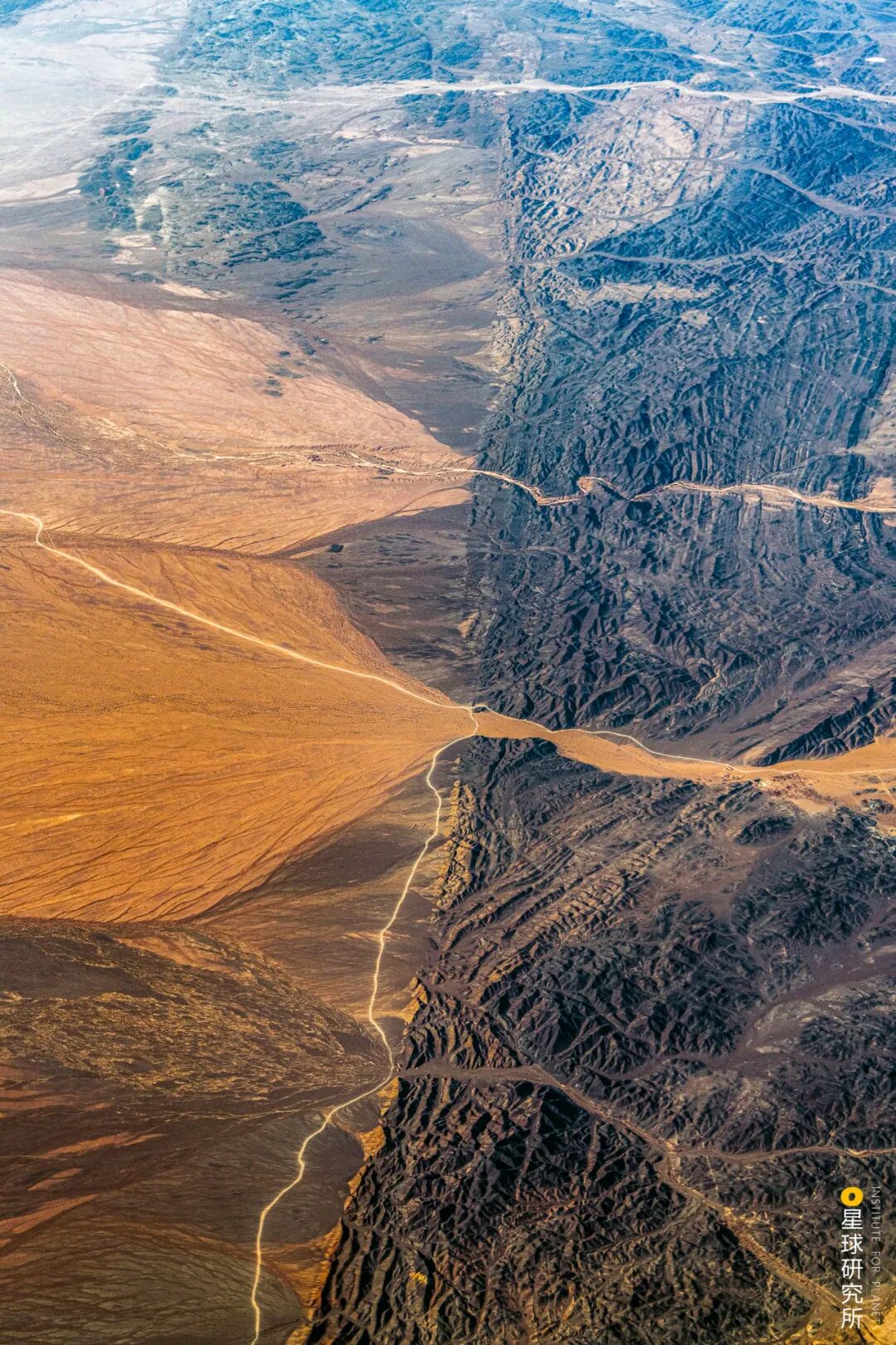 (俯瞰内蒙古阿拉善高原上的巨大沙漠,摄影师@陈剑峰)