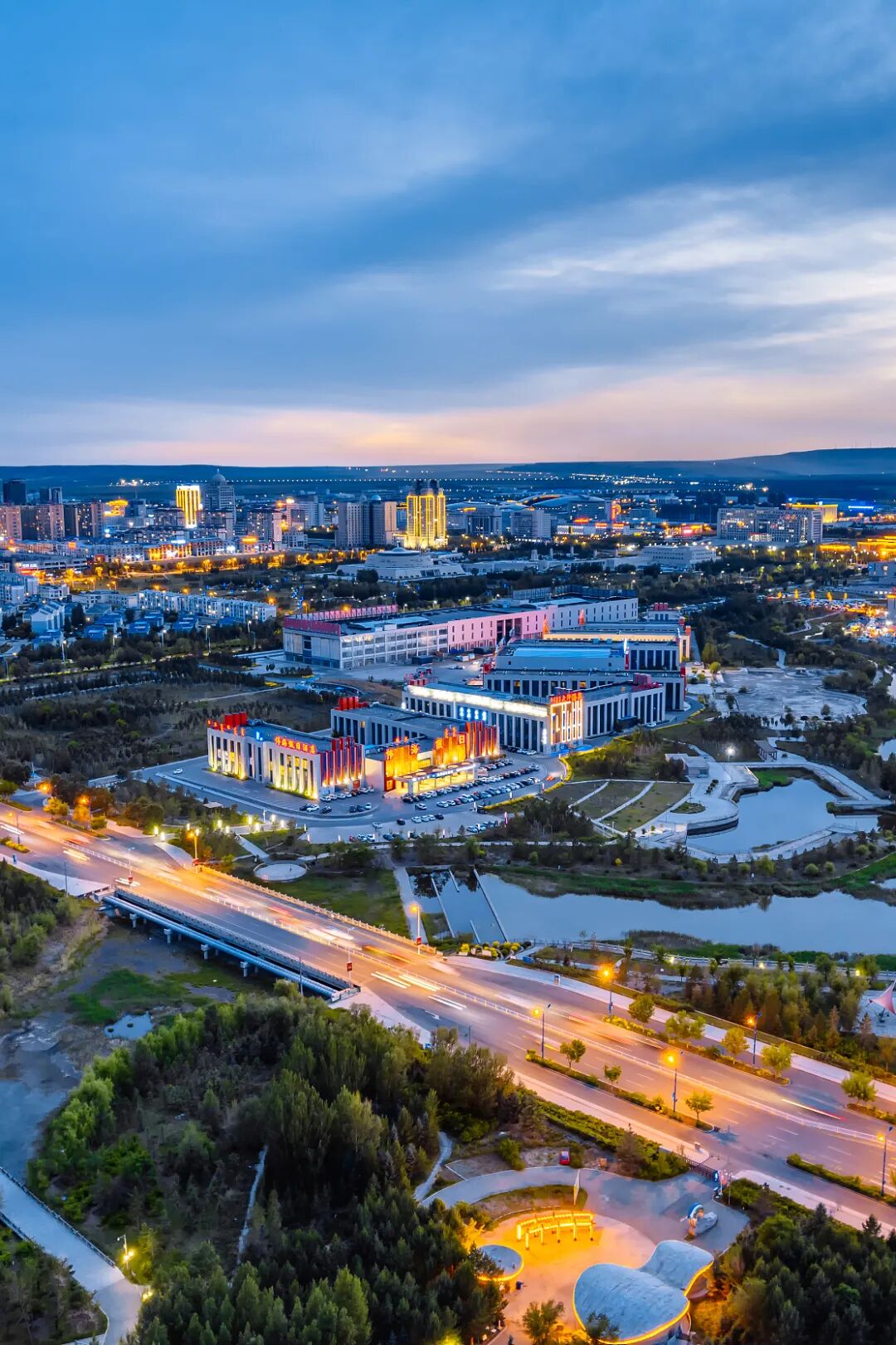 (远望内蒙古锡林浩特城市天际线,图片来源@视觉中国)