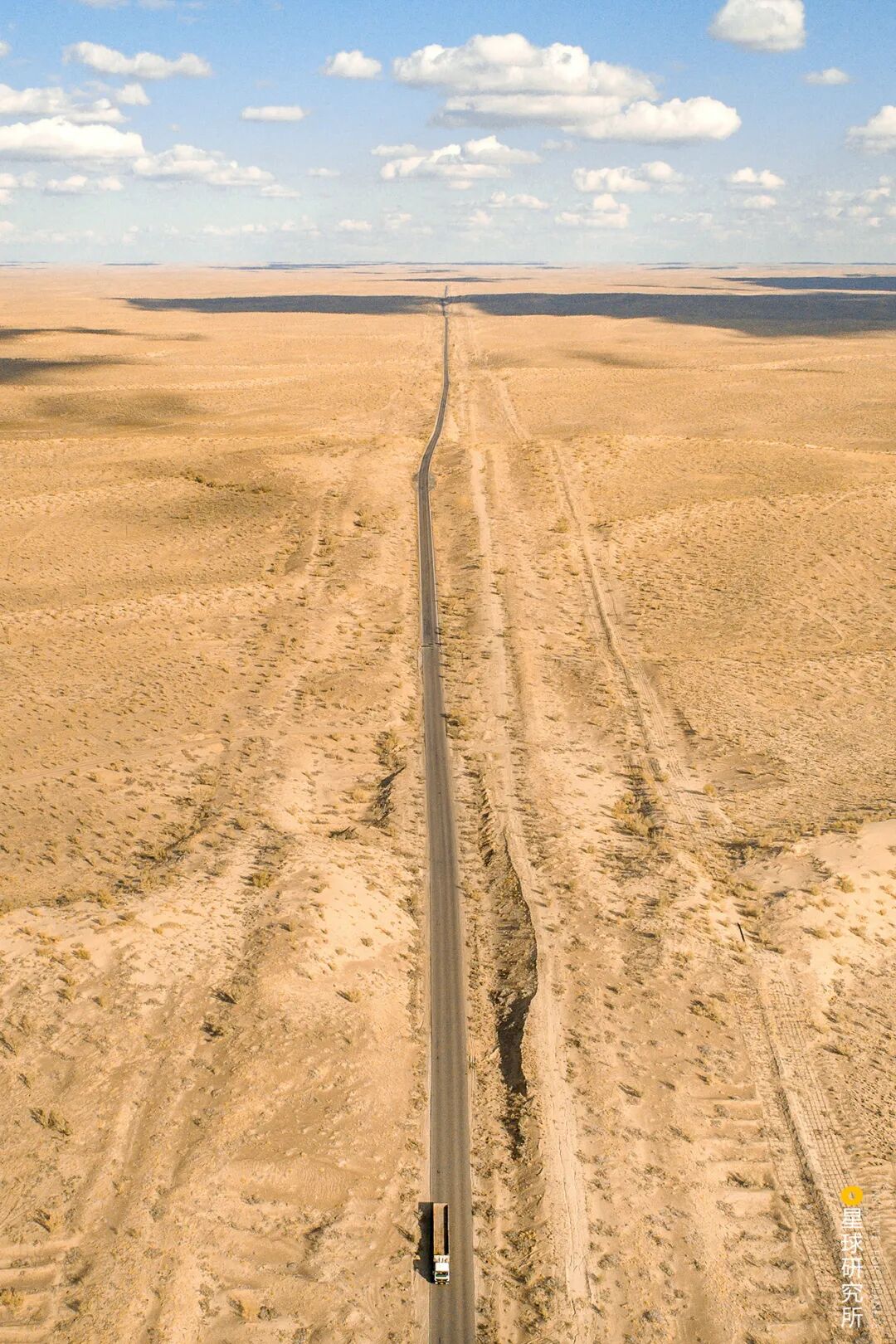 (331国道附近沙漠中的公路,摄影师@在远方的阿伦)