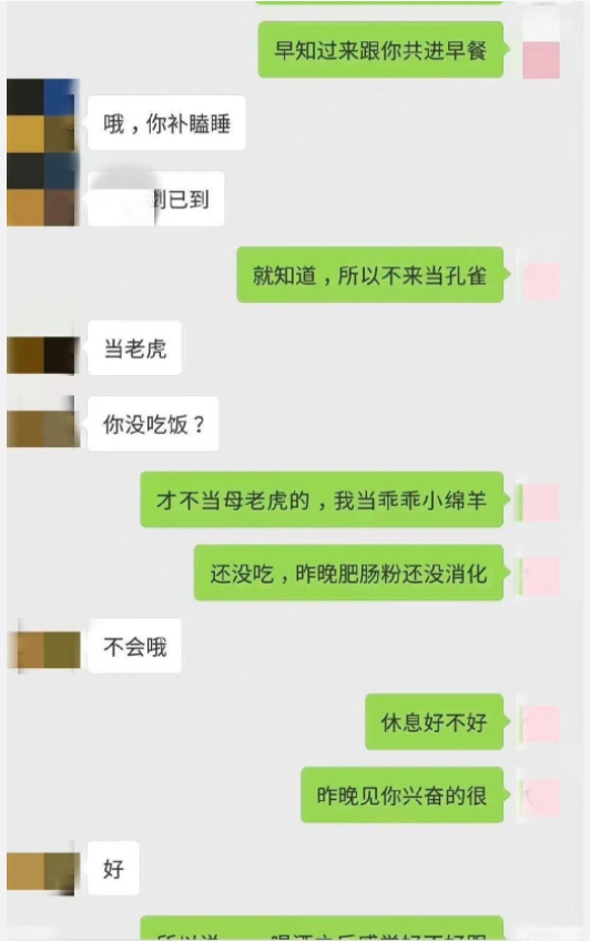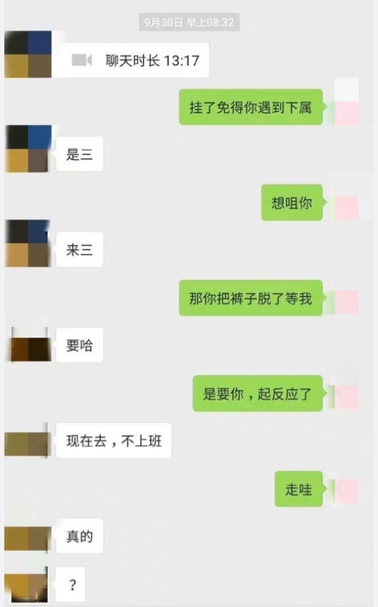 某天夜深人静女副区长睡熟后,其与男副区长激情澎湃的微信撩骚被男友发现了。