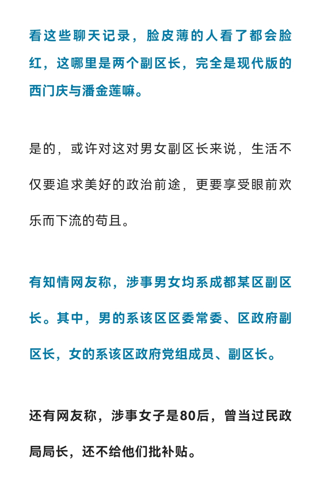 成都男女副区长激情聊天,尺度之大令人震惊,身份疑曝光,纪检部门已介入调查……
