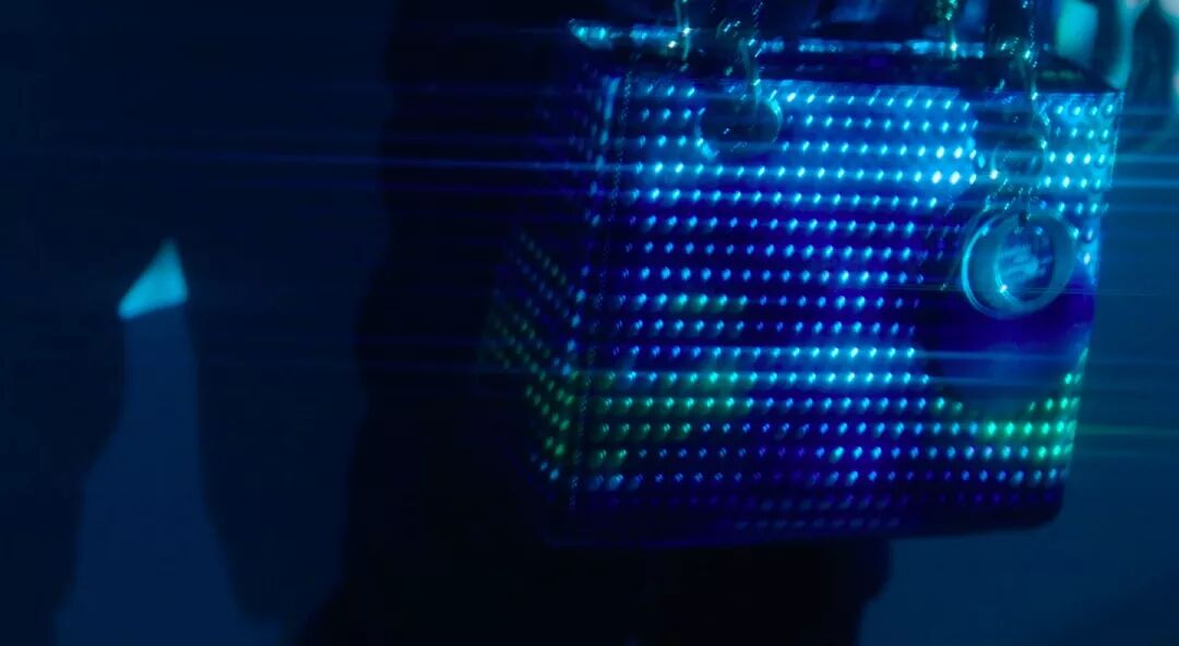 短片中,光与影间,李姝睿在跳动的色彩中缓缓叙述着她的故事。这位女性艺术家在明暗的变化下,开展了一场与Lady Dior手袋别具一格的“谈话”。让我们在其先生——实验音乐人李带菓创作的音乐中,把眼睛和耳朵交给她和他,去接近一个闪烁着光的图腾的奇妙世界。
