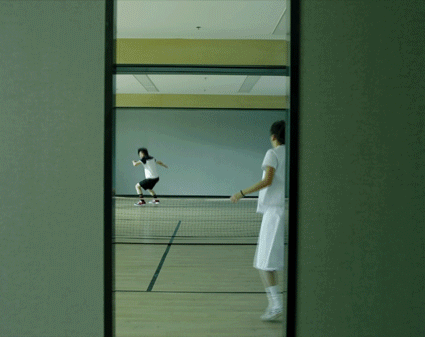 那是安东尼奥尼在上世纪六十年代的作品《放大》中那场经典的“空气网球赛”。看不见的球就像皇帝的新衣一样存在于选手和看客的脑海里——但它胜过皇帝新衣的部分是,谁都有可能充分入戏,然后真实的感受这只球,甚至可以触摸到它毛茸茸的表面、感受到它撞击手心的力度。