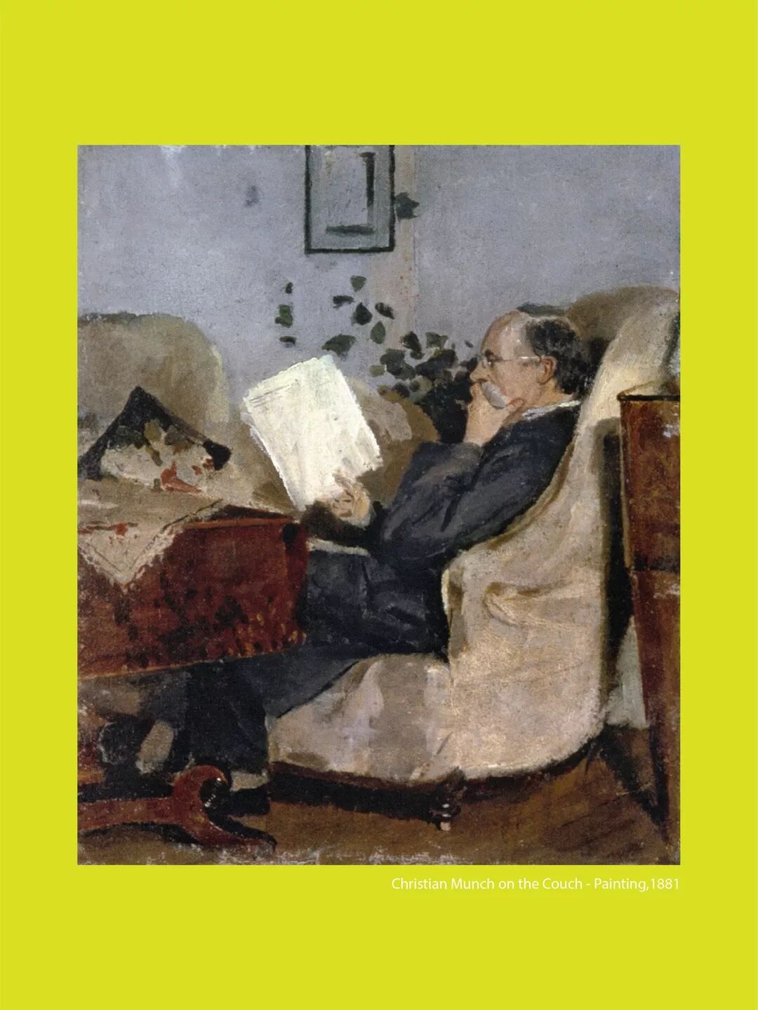 1885至1886年间,蒙克创作了著名作品《病孩》(The Sick Child)的第一个版本,晦暗的卧房中,他的姐姐索菲虚弱地躺在病榻上,他的继母凯伦(Karen)深埋面庞、紧握着索菲的手。