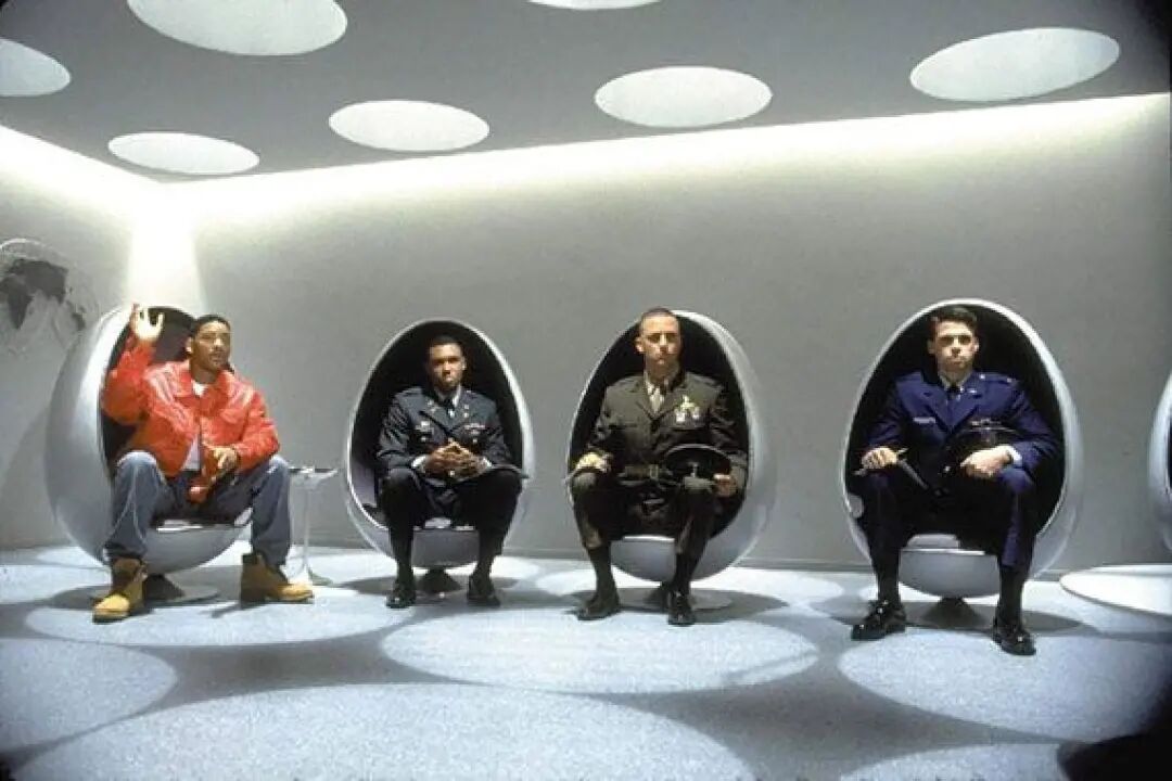 1996年蒂姆·波顿(Tim Burton)的科幻电影《火星人玩转地球》,女主持人就身穿带有Y2 K风格的荧光色服装,坐在波点布艺的球形椅中主持节目。1997年风靡全球的科幻喜剧片《黑衣人》中,男主角威尔·史密斯和其他面试者也都坐在蛋形椅中(不过这款蛋形椅的设计者并不是阿尼奥,而是另一位丹麦工业设计师亨里克·索尔·劳尔森 Henrik Thor-Larsen)。