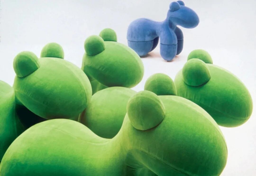 阿尼奥鼓捣出来的好玩椅子,还远远不止泡泡椅这一种:舌头椅、南瓜椅、蝴蝶椅、香皂椅,这其中最出名的可能还是像一个蘑菇柄状的蘑菇椅和像一个大玩具的小马椅。