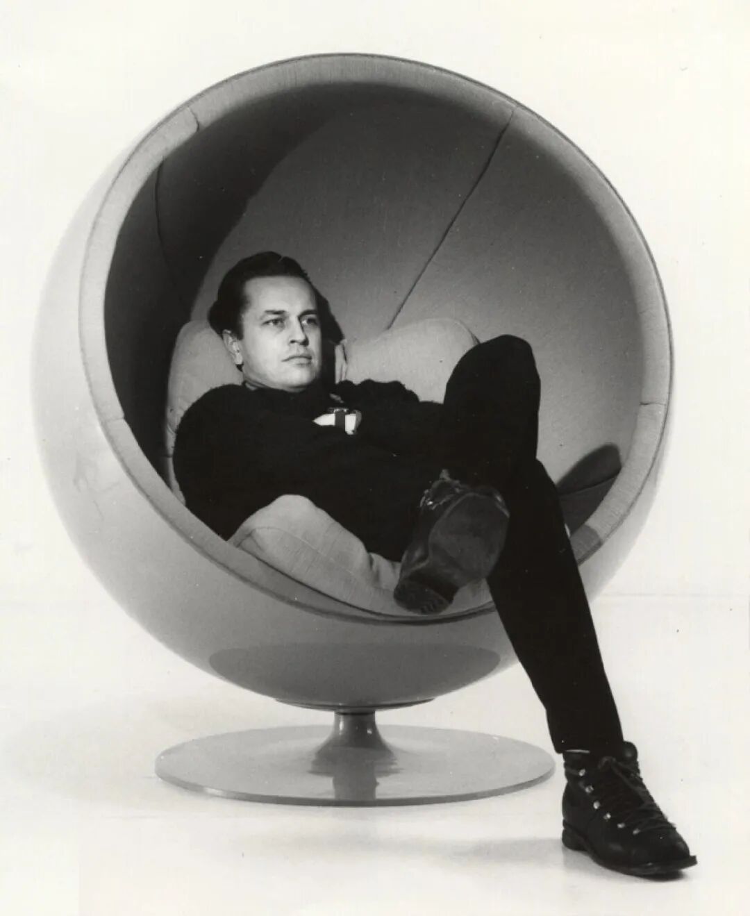埃罗·阿尼奥(Eero Aarnio),1932年出生于芬兰赫尔辛基,曾在赫尔辛基应用艺术学院学习室内建筑和工业设计。毕业之后,他跟着芬兰设计师伊尔马里·塔皮奥瓦拉(Ilmari Tapiovaara)工作了几年,后者以设计家具和纺织品著称,也是椅子设计界的标杆人物之一。30岁这年,阿尼奥还创立了自己的设计工作室。