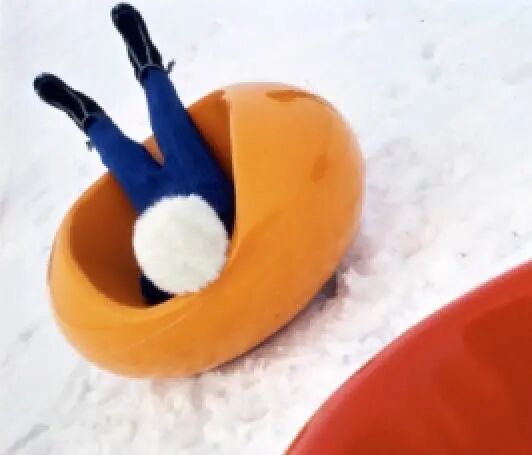 直到今天,阿尼奥自己最喜欢的是带有白色外壳和黑色软垫的那一款配色的球形椅。躺在上面的人,有一种淹没在颜色接缝中的感觉。对阿尼奥来说,也许坐在里面一个人思考、冥想、探索内心世界,就像坐在太空舱里在宇宙里遨游。