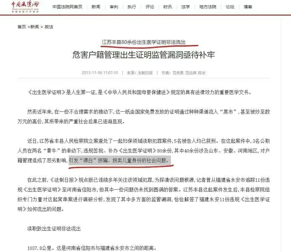 「小花梅」事件不是孤立事件,它折射的是丰县这片土地上的文化。丰县一直是拐卖妇女的重灾区,也是拐卖儿童的重灾区。在丰县,为拐卖来的儿童伪造出生证明,就是一个很大的产业。
