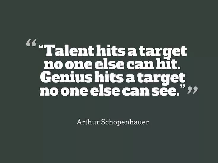 15/ 德国哲学家叔本华曾说,"天才取得的成就不仅超出其他人的能力,而且还超乎他们的理解。 能人就像一个击中了无人可及的目标的弓箭手;天才也击中了他的目标,但这目标之远其他人无法看见" .