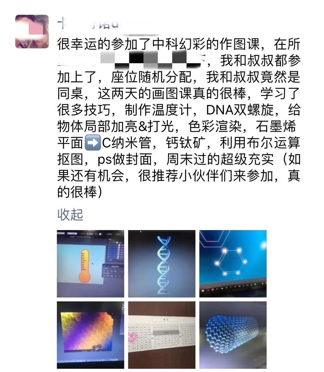 中科幻彩科研绘图培训拥有一支专业的讲师团队,包括中科幻彩设计总监、金牌设计师在内的主讲老师毕业于北京大学、中科院化学所等,拥有物理化学生物等专业博士学位,师从中国科学院院士,发表Nat.Commun./Sci. Adv./Adv. Mater.等SCI论文数篇,拥有深厚的科研背景,并受邀参与Science Nature Cell杂志中国主编圆桌对话会议,十年设计工作经验,制作顶刊封面作品三千余幅,曾为世界顶级学术期刊Science和央视制作三维动画。