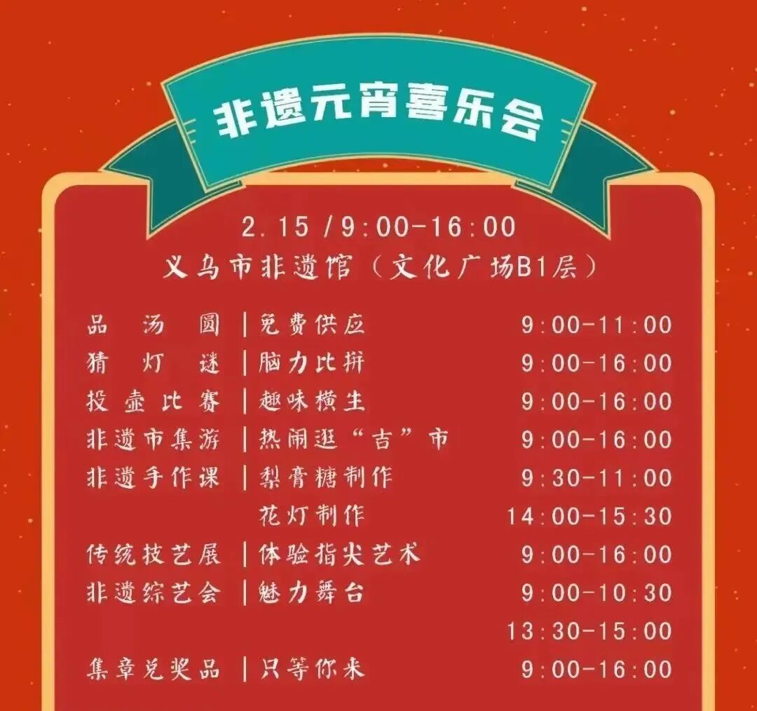 “非遗过大年 文化进万家”2022年义乌市非遗元宵喜乐会活动将于2月15日(正月十五)9:00—16:00在市非遗馆举行。