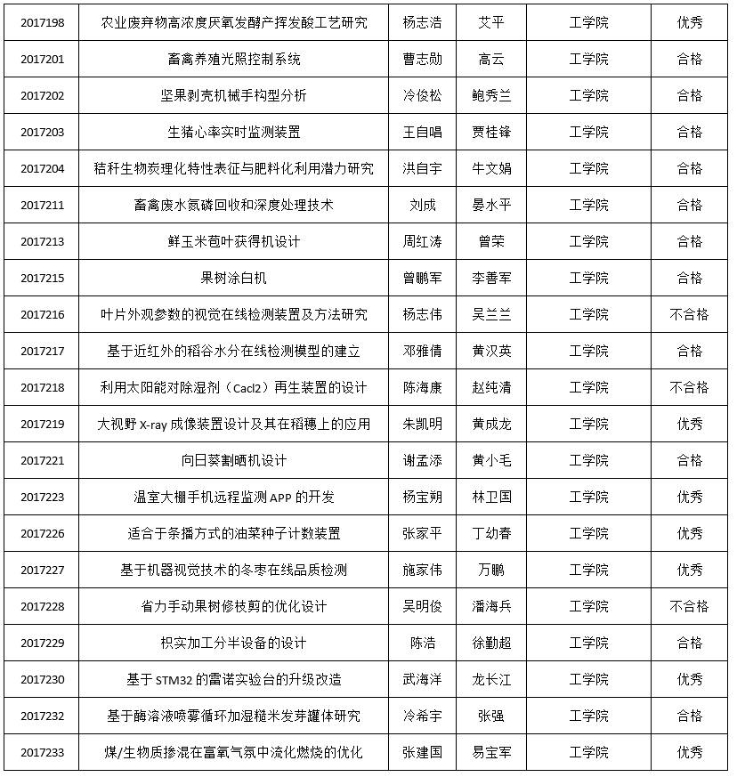 1.华中农业大学2017年第二批 “国家级大学生创新创业训练计划”项目结题验收结果