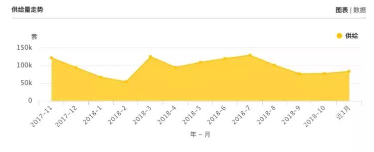 过去 1 年北京市租房市场供给量变化,图表来自中国房地产协会。