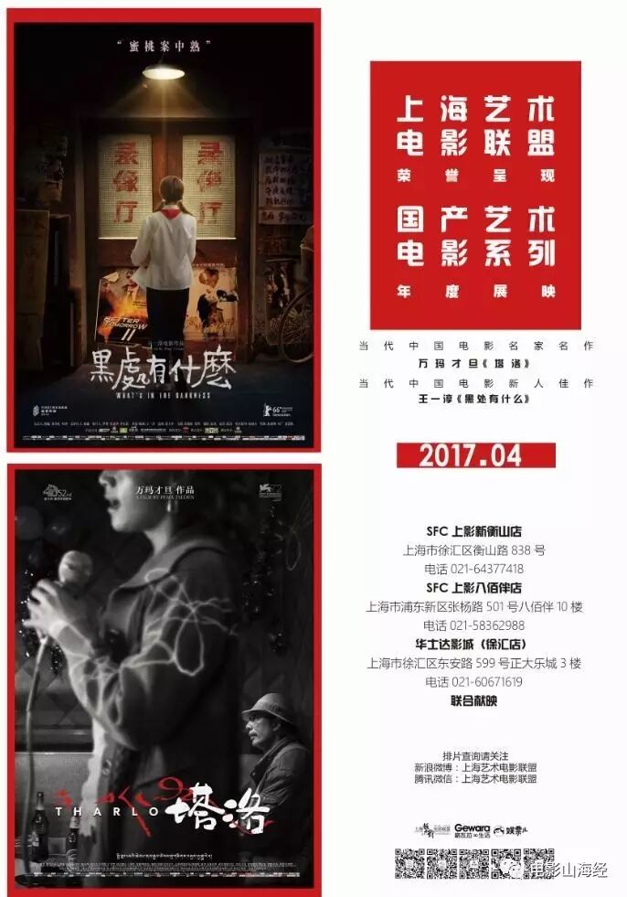 这个月最重要的工作其实是同步。2016年12月,上海艺术电影联盟开拓到了南京,这原本是一件好事,但比较遗憾的是因为某些原因,我始终无法参与到南京站放映宣传工作中。唯一能做的是把2017年1-3月南京站的影片选好,从2017年4月起的片目确保南京与上海同步。为了确保上海三家影院和南京七家影院的同步放映,很早就选定了《塔洛》和《黑处有什么》两部影片。