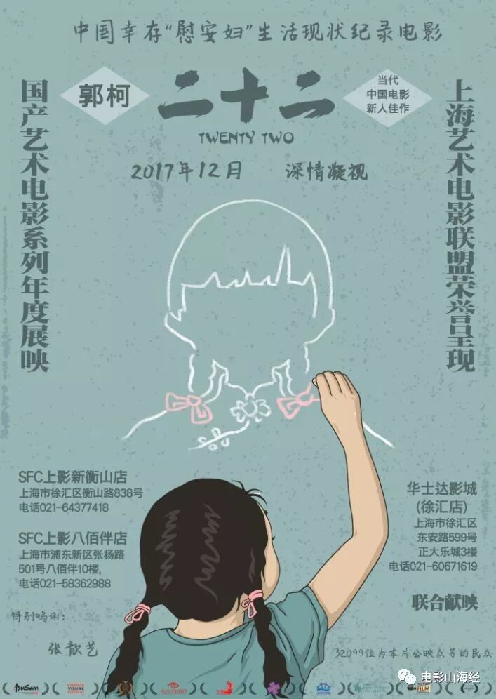 12月,上海艺术电影联盟的国产电影展映片目是纪录片《二十二》,这也是为配合南京大屠杀死难同胞八十周年祭特别安排的放映。