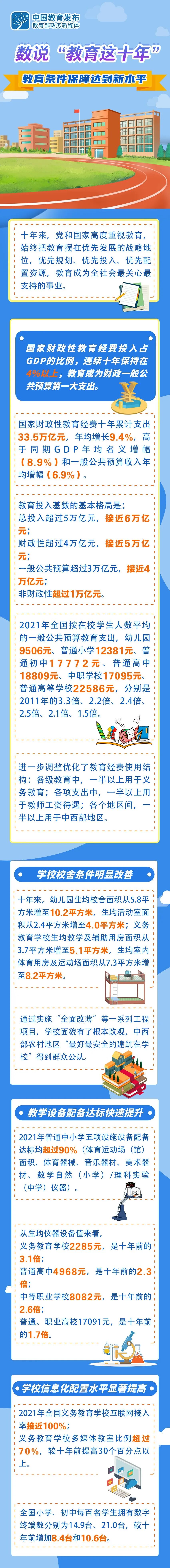 教育是国之大计、党之大计。党的十八大以来,我国教育面貌正在发生格局性变化。今天的“教育新征‘图’”专栏通过一组数据,“图”说十年来教育条件保障达到的新水平——