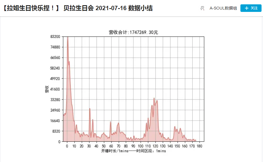 ▲2021年7月16日,贝拉生日会直播当日的营收数据小结。图/B站A-SOUL数据组“个人空间”截图