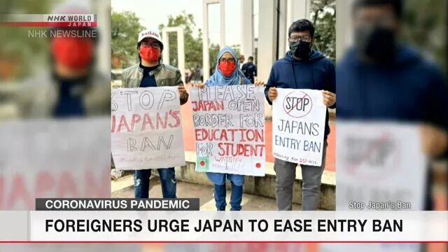 ▲各国计划赴日留学者联合抗议日本入境政策。 图源:NHK国际