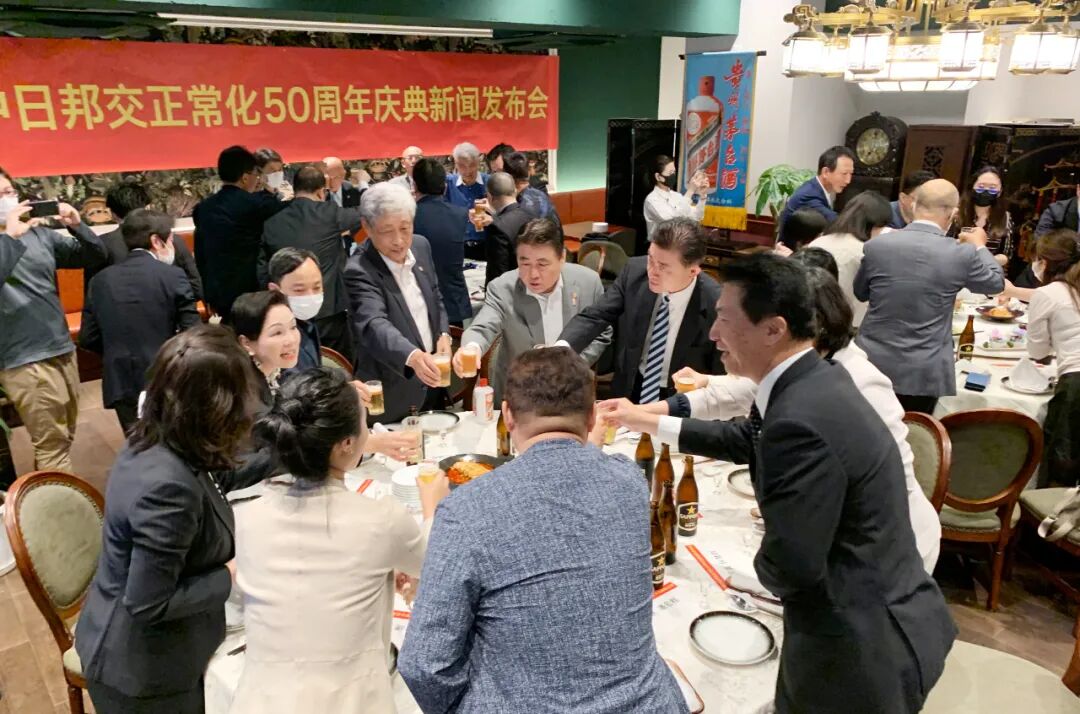 本次发布会结束之后,到场的活动委员会成员、冠名赞助商人员和中日媒体记者参加了晚宴。满座嘉宾在晚宴上觥筹交错,共同为预祝在2022年9月16日举行的庆典晚会的成功举行而干杯。![]()