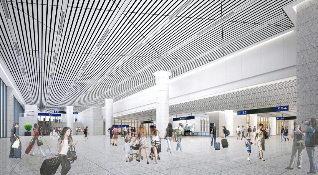 通过在高铁站房内部与周边复合多种城市功能空间,打造以高铁站房为基础的城市大型综合体。