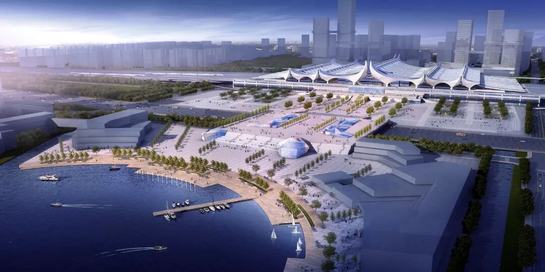 通过对周边建筑高度的控制以及空间轴线的塑造,让旅客饱览胶州湾美丽的海洋风光;以海浪为造型意象,表达滨海城市的气质特征。