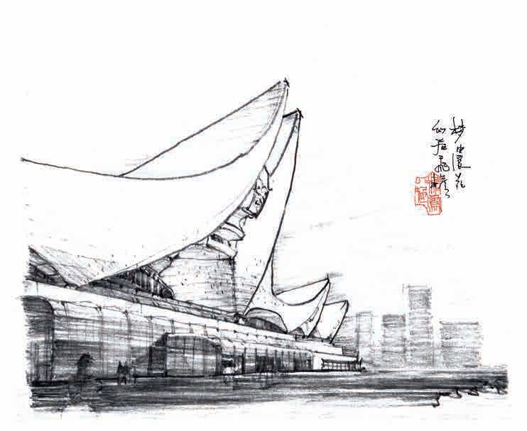 ▲程泰宁院士设计草图——“梦由浪花,幻若飞檐”