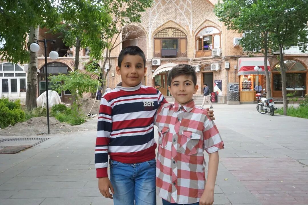 大不里士大巴扎遇到两个孩子 追着我们要拍照