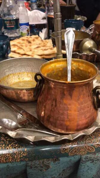 最好就要说一下伊朗的饮食啦。对于我这样一个吃货来说,伊朗的食物在我去过的国家排得上倒数第三,一天三顿饭真的有点痛苦。菜永远都是自助蔬菜色拉,主菜永远只能在烤羊肉、烤鸡肉和烤鱼中间选,再配上藏红花米饭,菜与米饭内总是掺杂香料。馕也是伊朗的特色,每餐必备。当头两天的新鲜感过去后,就开始吃起国内带来的榨菜、萝卜干、辣酱、牛肉等等,毕竟我们来自“美食王国”,天天一成不变的饮食可无法满足我们。
