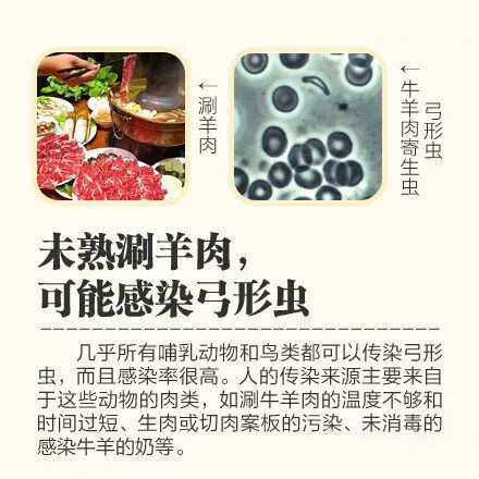 吃未熟涮羊肉可感染弓形虫 。