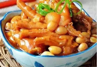 ✦鸡爪10个,花生米100g,葱适量,蒜瓣2个,黄豆酱20g,酱油20ml,老抽10ml,白糖3g,料酒20ml,盐,鸡精,水淀粉,姜。