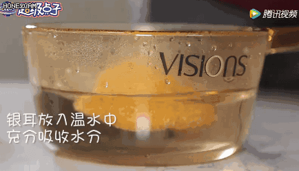 2、等到干银耳略微泡胀,体积变大后,将银耳放入微波炉中,用中火微波2分钟即可泡发银耳。