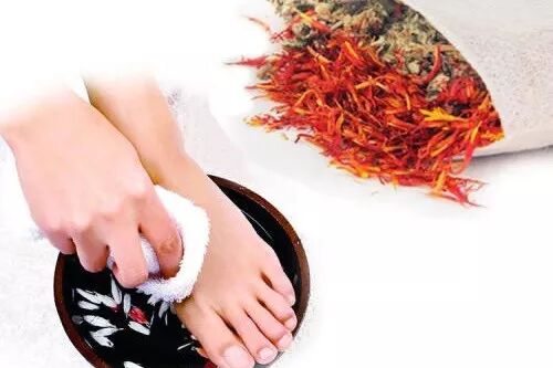 取艾叶500克,红花100克。均分为20份,每日1次(加食醋100克,花椒20粒,食盐2勺),用纱布包裹加水煮开,用水量为漫到脚踝处即可,水温不宜过高,以15~30分钟为限。既可以去除脚上的死皮、老茧,使脚光滑细腻,还能对全身脏器起到通经、活血、化淤作用。