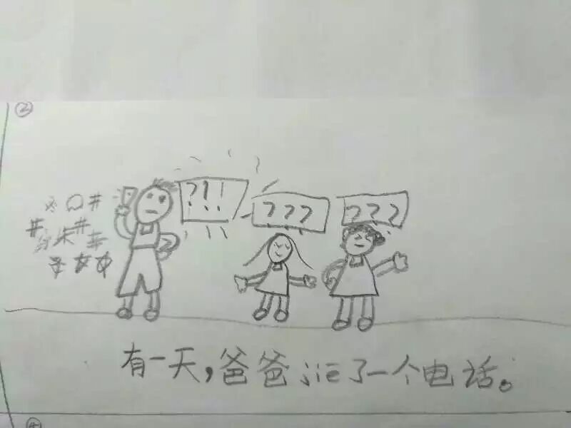 “我恨爸爸的电话,恨给爸爸打电话的叔叔。因为爸爸说话总不算数,经常被电话中的叔叔叫走。我开始讨厌爸爸了。”