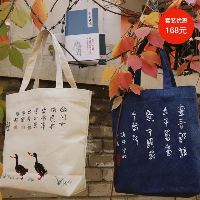 两款帆布包(蓝色“云梦之泽”款,米白色“西洲曲”款)如约推出;