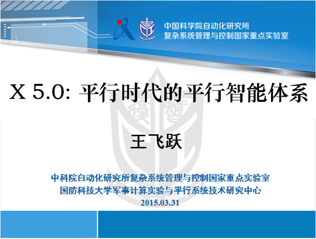 2013年开始,我们与青岛合作,成立了中科院的“青岛智能产业技术研究院”,希望平行智能技术落地、实用、产品化,并设红岛学院,蓝领、白领、金领之外,培养"红领"人才,希望成为智能产业的“黄埔军校”。平行智能系统X5.0将充分发挥大众的智慧成为未来智能社会的基础设施,就像目前工业社会的高速公路、高铁、机场、港口等等,进而充分发挥利用大众的创新能力,最终进入智慧社会。