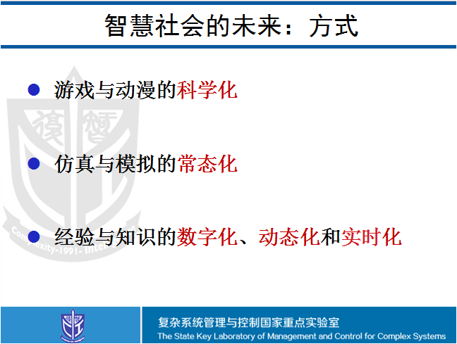 借助大数据等技术的支撑,通过ACP的平行理念,我们就可以实现从牛顿到默顿的飞跃,实现从物理信号到社会信号的转化。牛顿定律是知你为何,我们将来必须到默顿定律——望你为何,实现从机械系统到智能系统的升华。